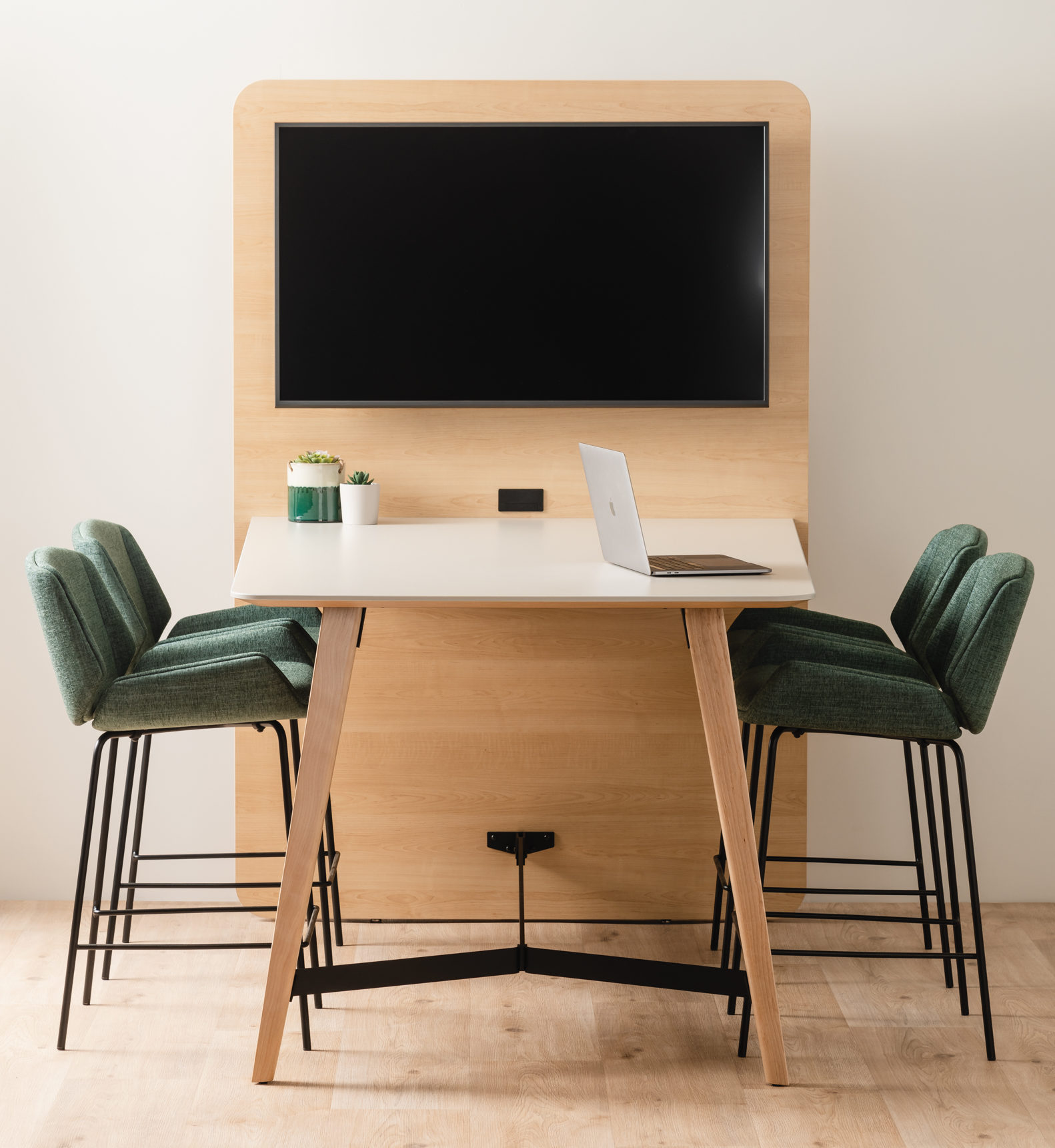 Video conferencing is part of our new norm, so make space for it. The Zetti Fit by Roulliard offers a clutter-free video conferencing space that features a small work surface mounted to a vertical media panel, tucking away excess cords and plugins. The Zetti Fit accommodates smaller groups and it’s compact size makes it ideal for smaller spaces. The minimal design is classic and modern, perfectly complimenting any aesthetic. Start collaborating more freely and safely.